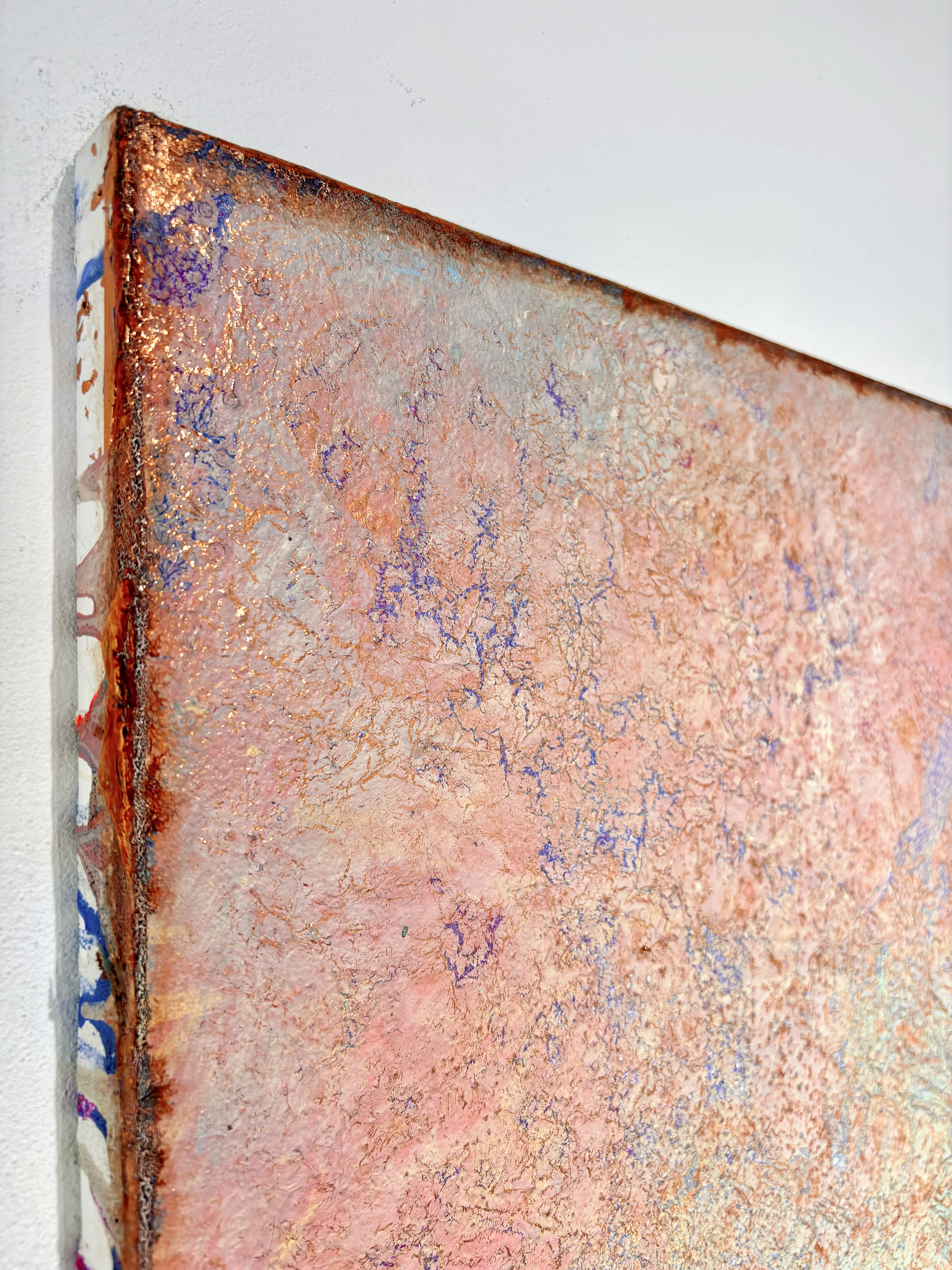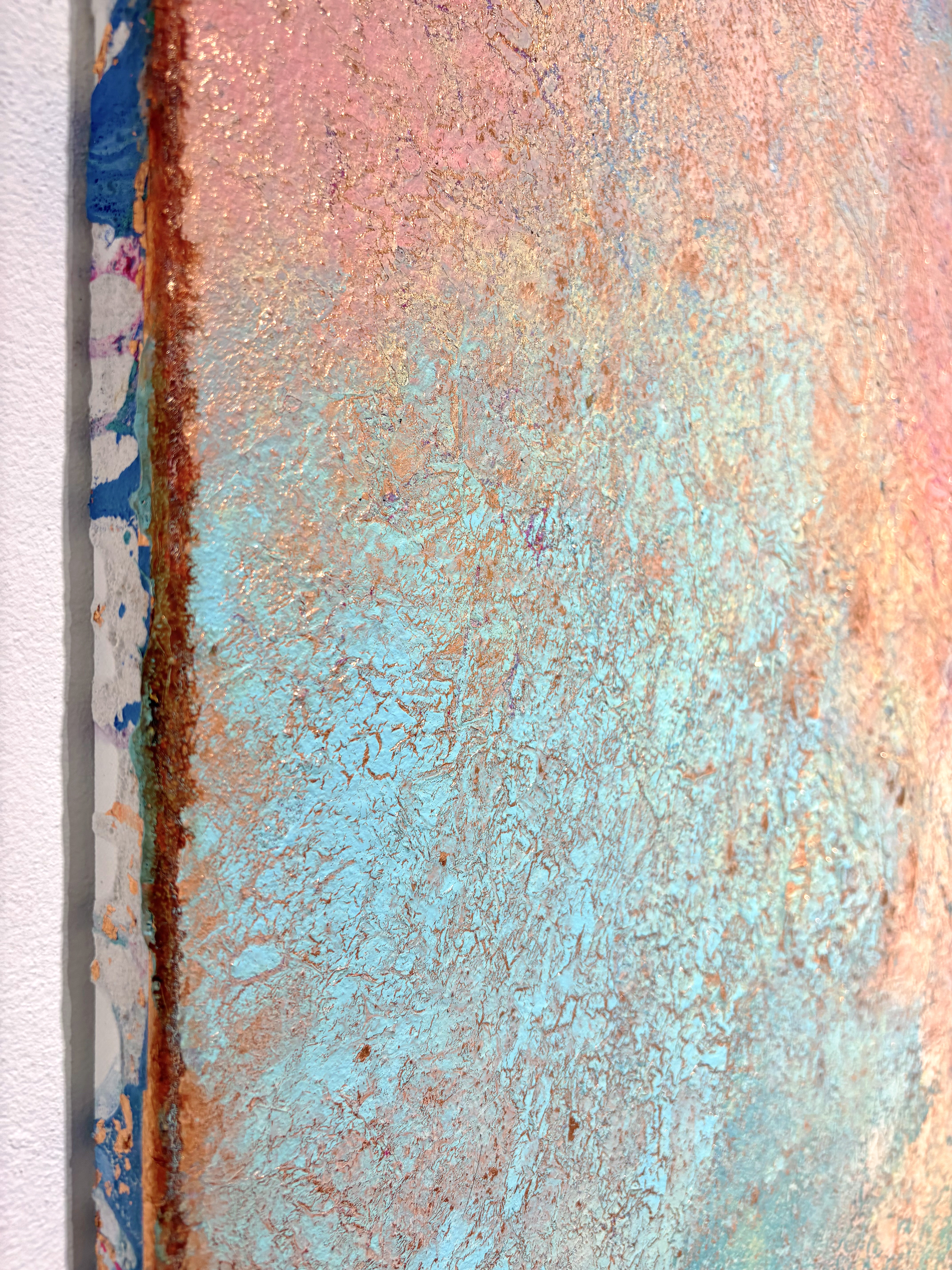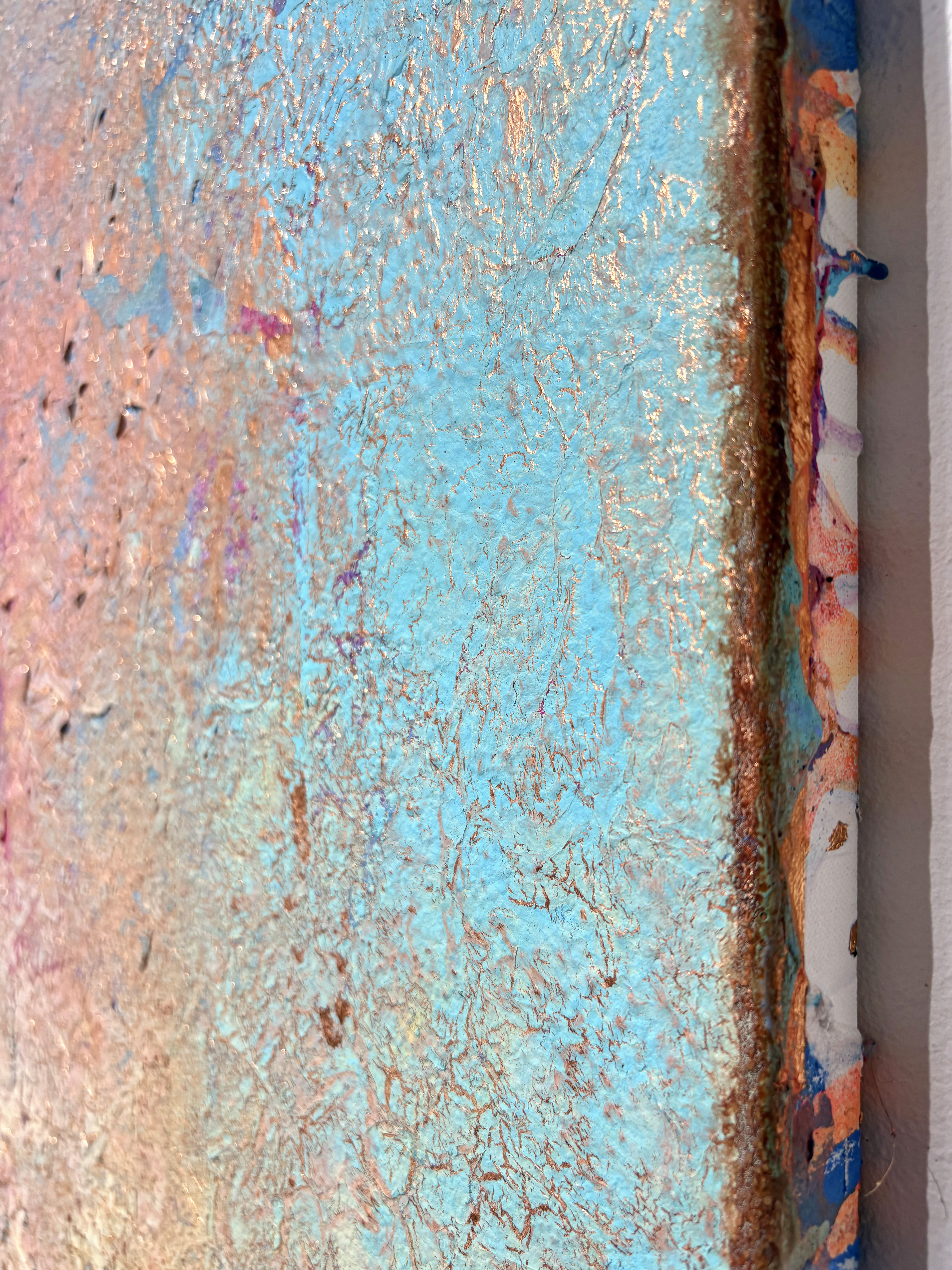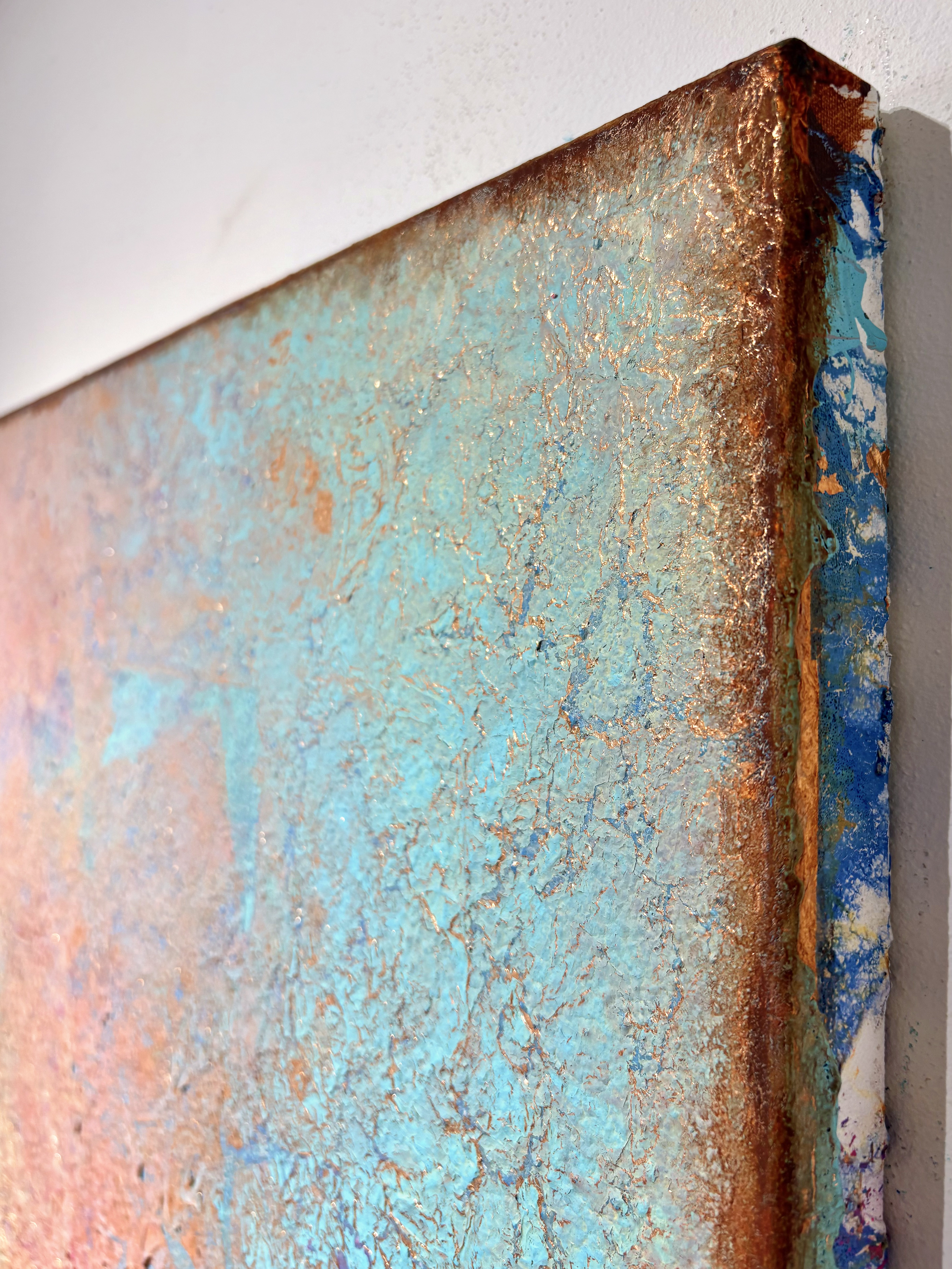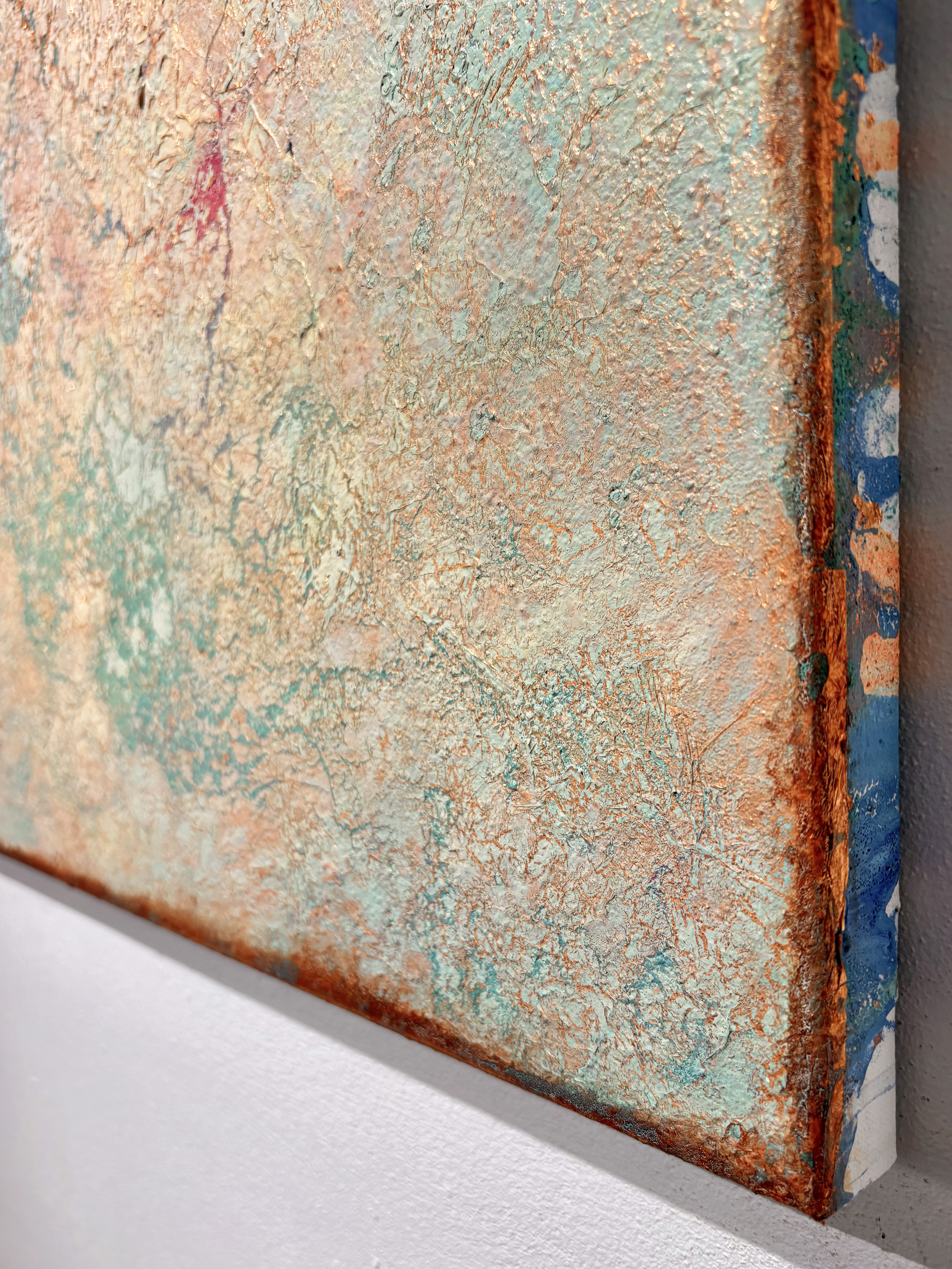 All of my abstract works are original mixed media artworks on canvas, usually consisting of more than 10 layers. Materials I use: Sand, marble powder, foils, acrylics, oil pastel, coal, spray paint and varnish. My goal is to create interesting structures, fine textures and soft color harmonies for an emotional perception.