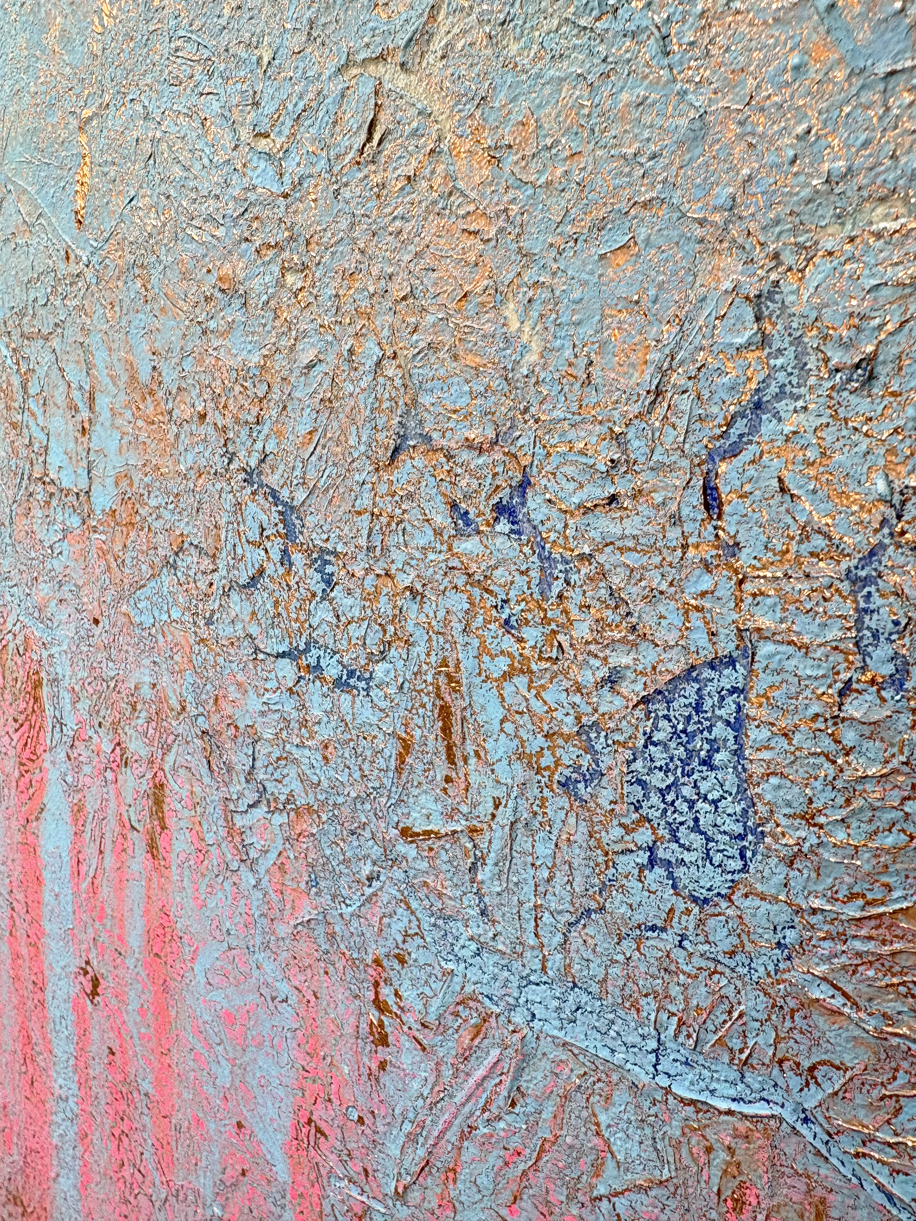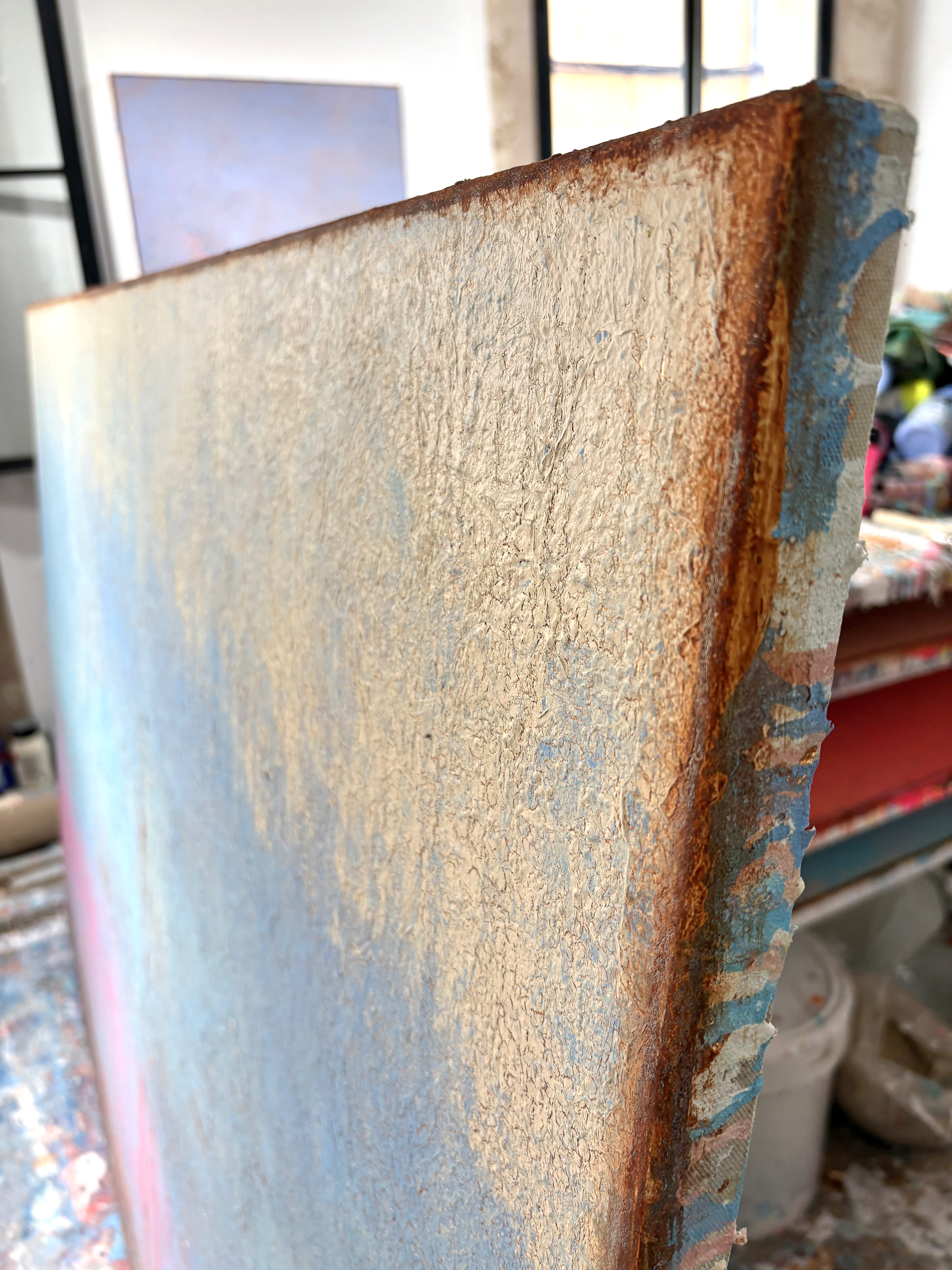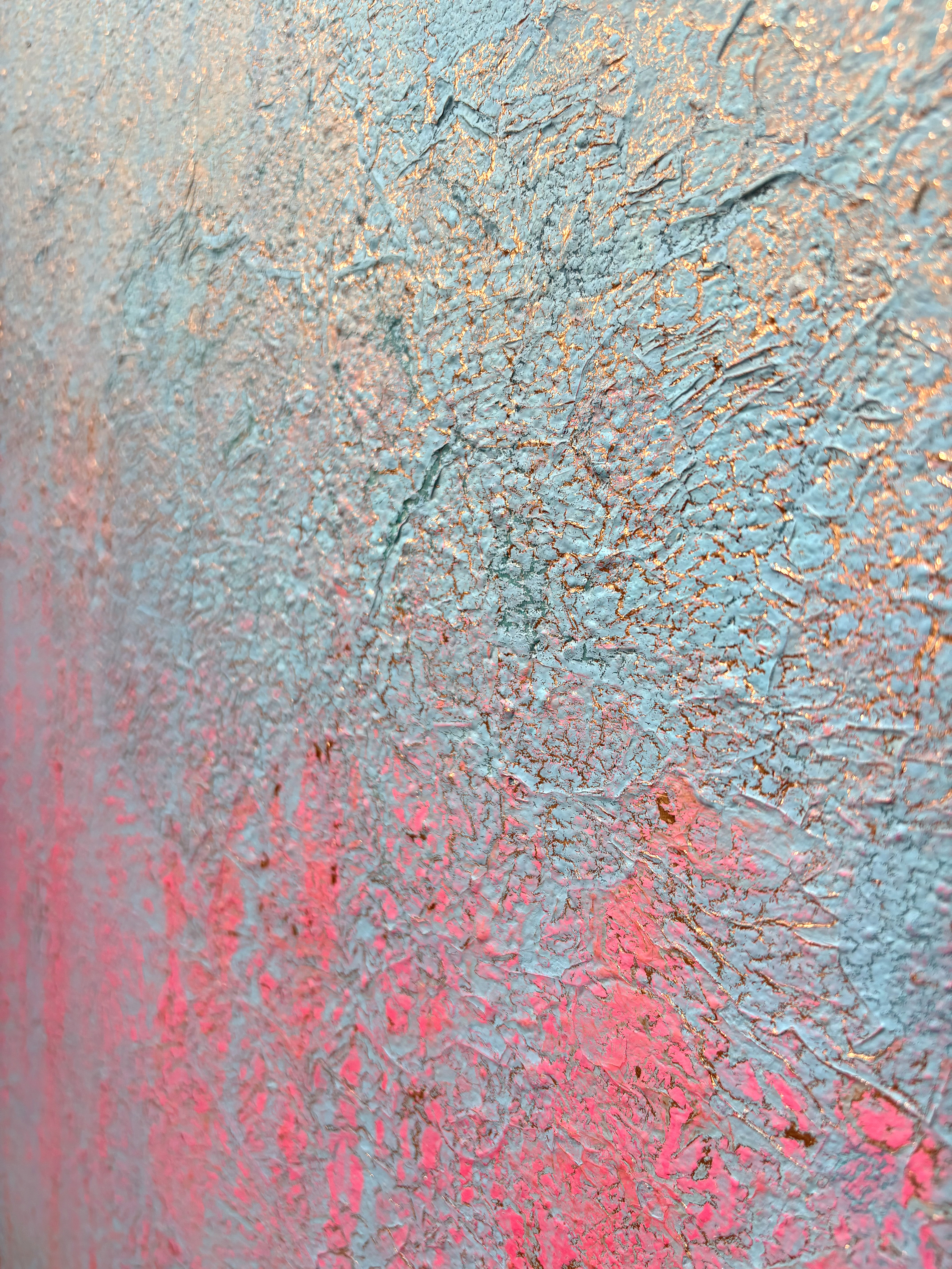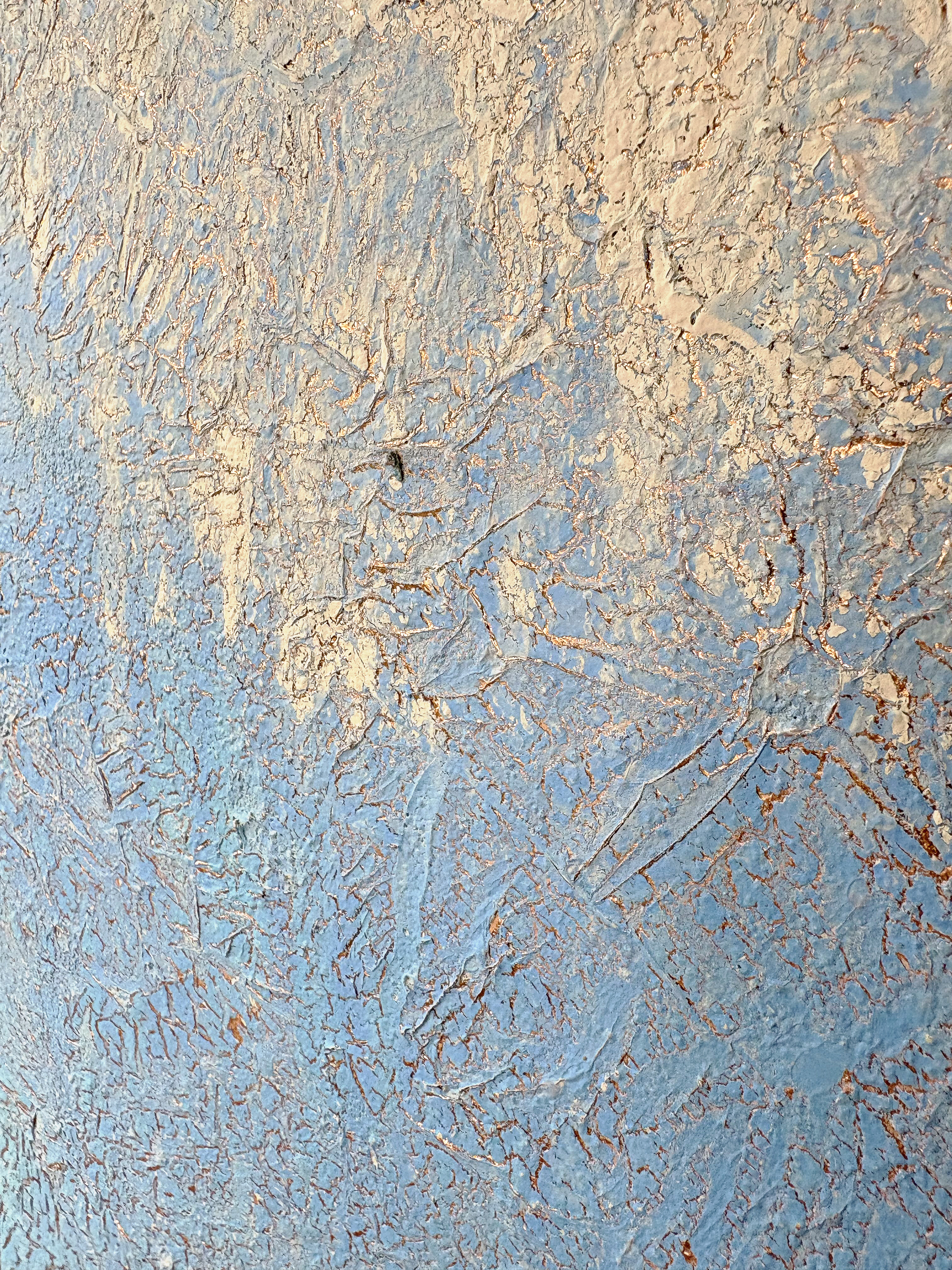 All of my abstract works are original mixed media artworks on canvas, usually consisting of more than 10 layers. Materials I use: Sand, marble powder, foils, acrylics, oil pastel, coal, spray paint and varnish. My goal is to create interesting structures, fine textures and soft color harmonies for an emotional perception.