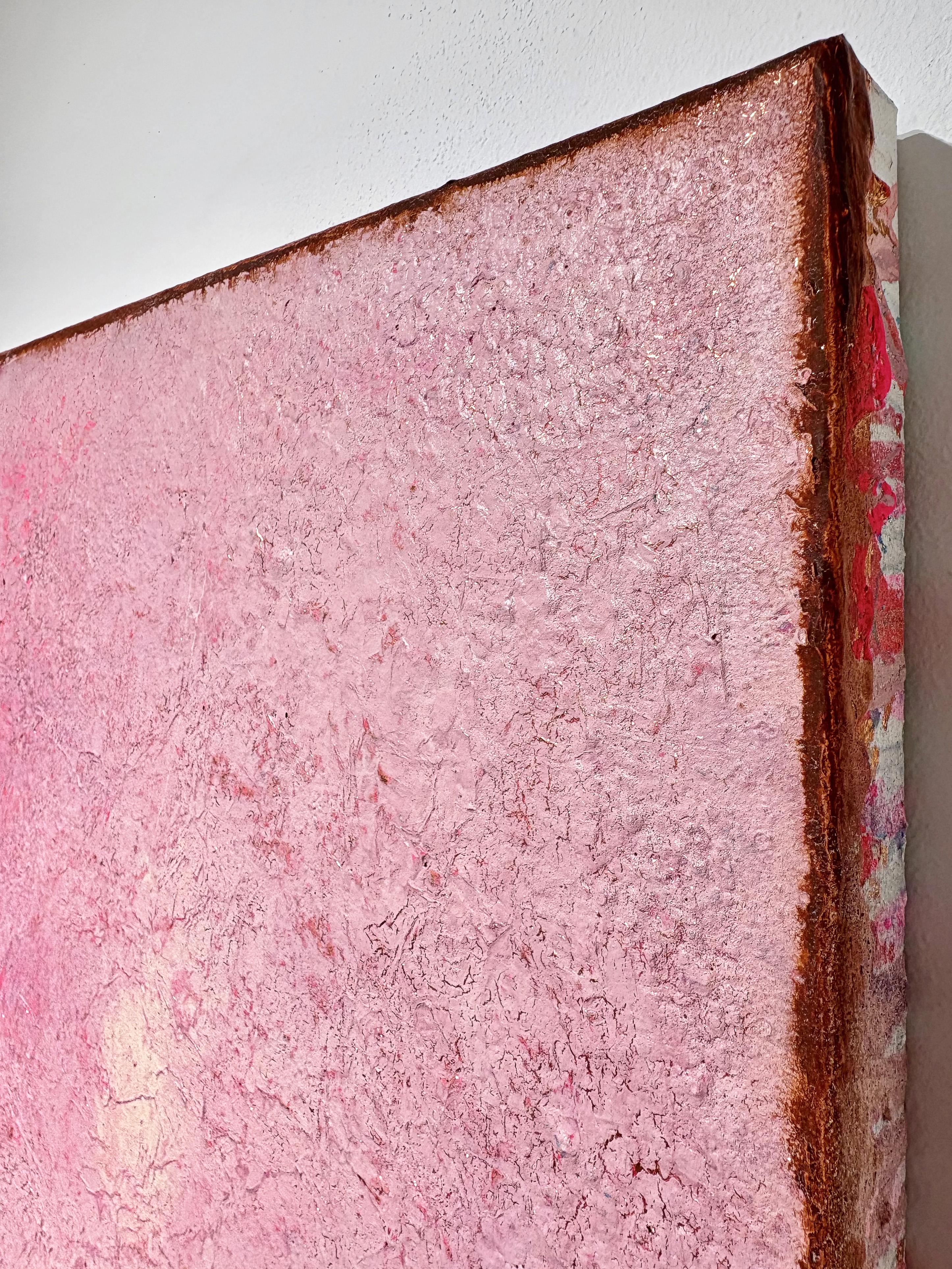All of my abstract works are original mixed media artworks on canvas, usually consisting of more than 10 layers. Materials I use: Sand, marble powder, foils, acrylics, oil pastel, coal, spray paint and varnish. My goal is to create interesting structures, fine textures and soft color harmonies for an emotional perception.
