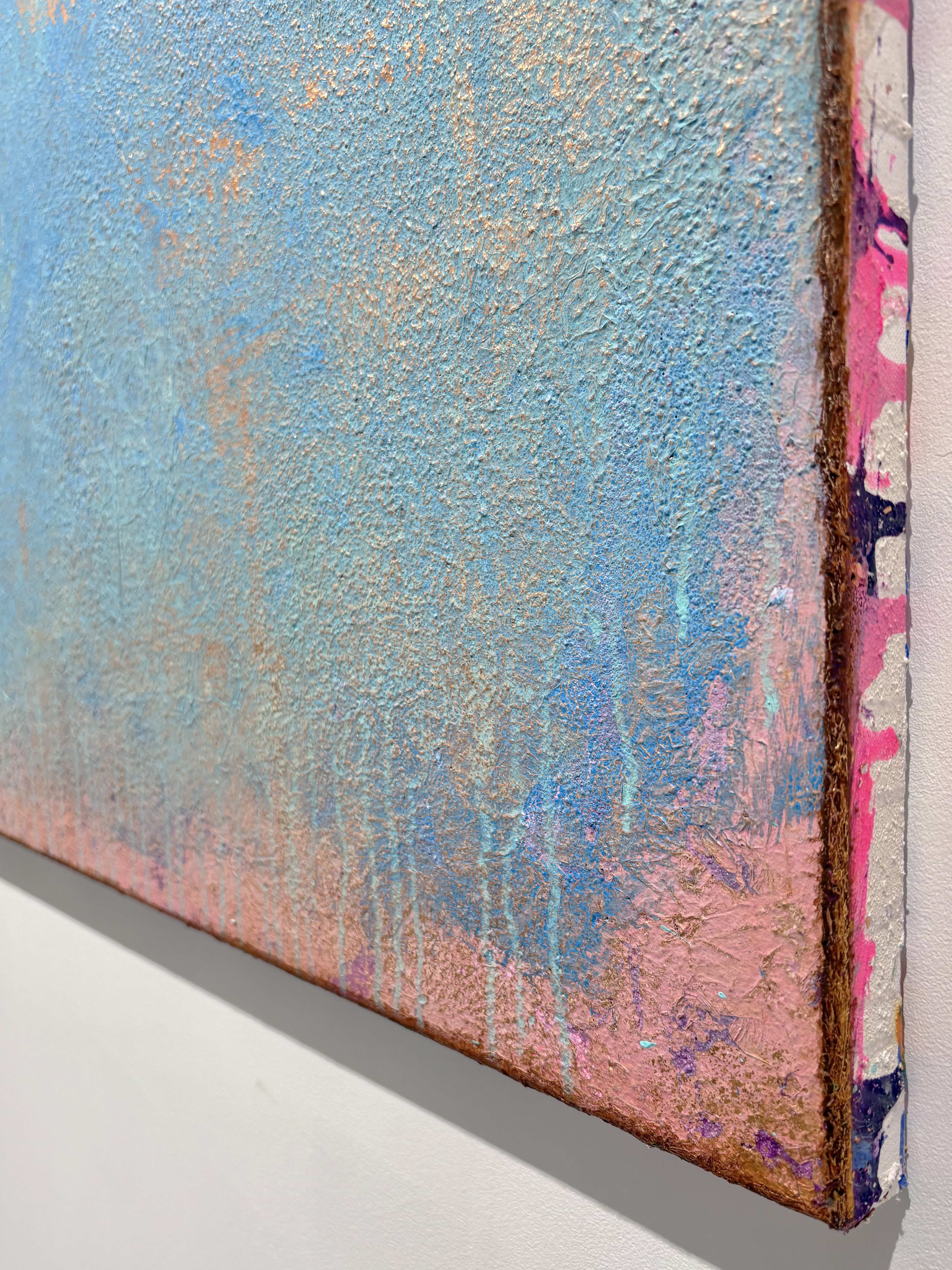 All of my abstract works are original mixed media artworks on canvas, usually consisting of more than 10 layers. Materials I use: Sand, marble powder, foils, acrylics, oil pastel, coal, spray paint and varnish. My goal is to create interesting structures, fine textures and soft color harmonies for an emotional perception.