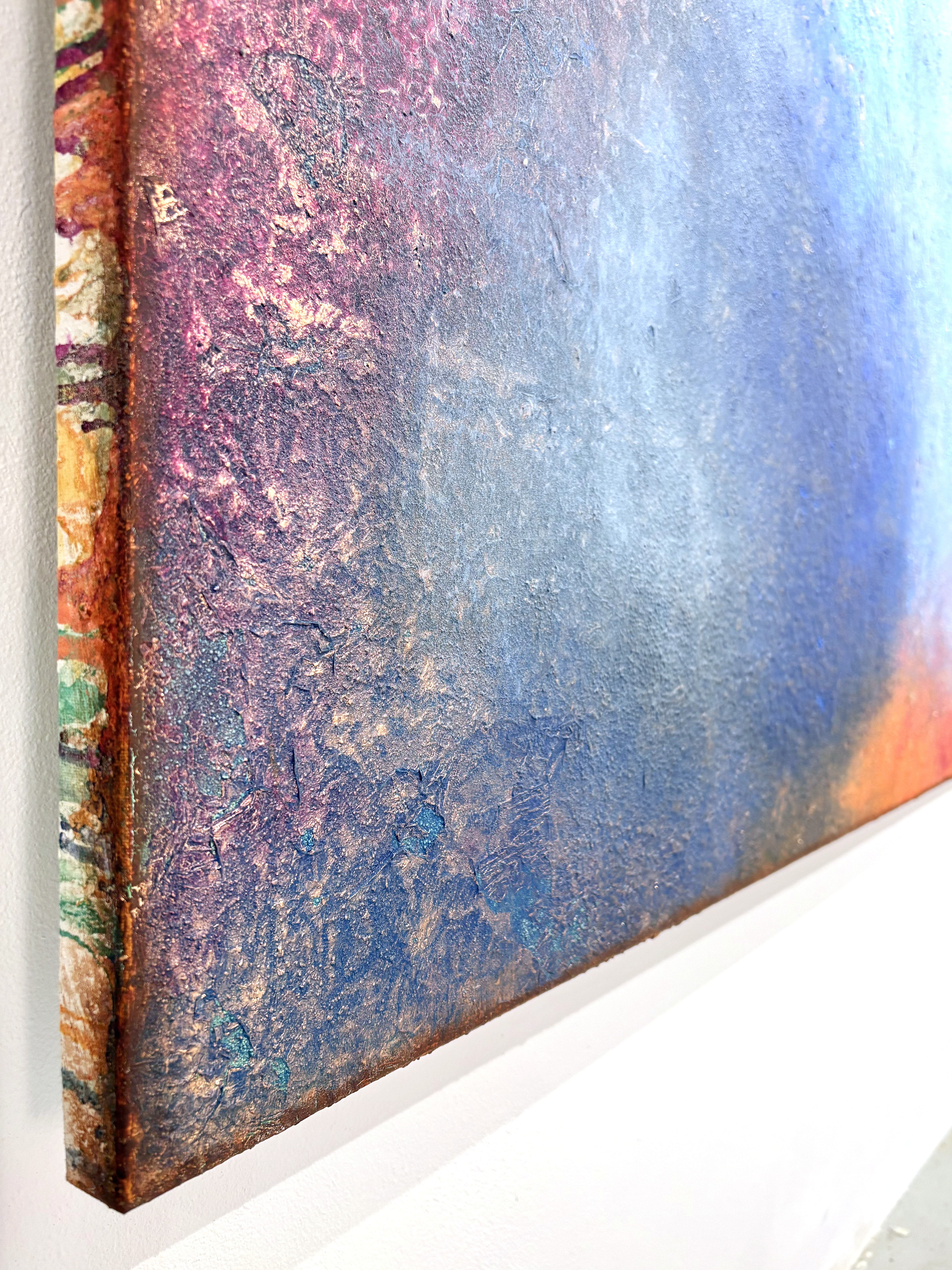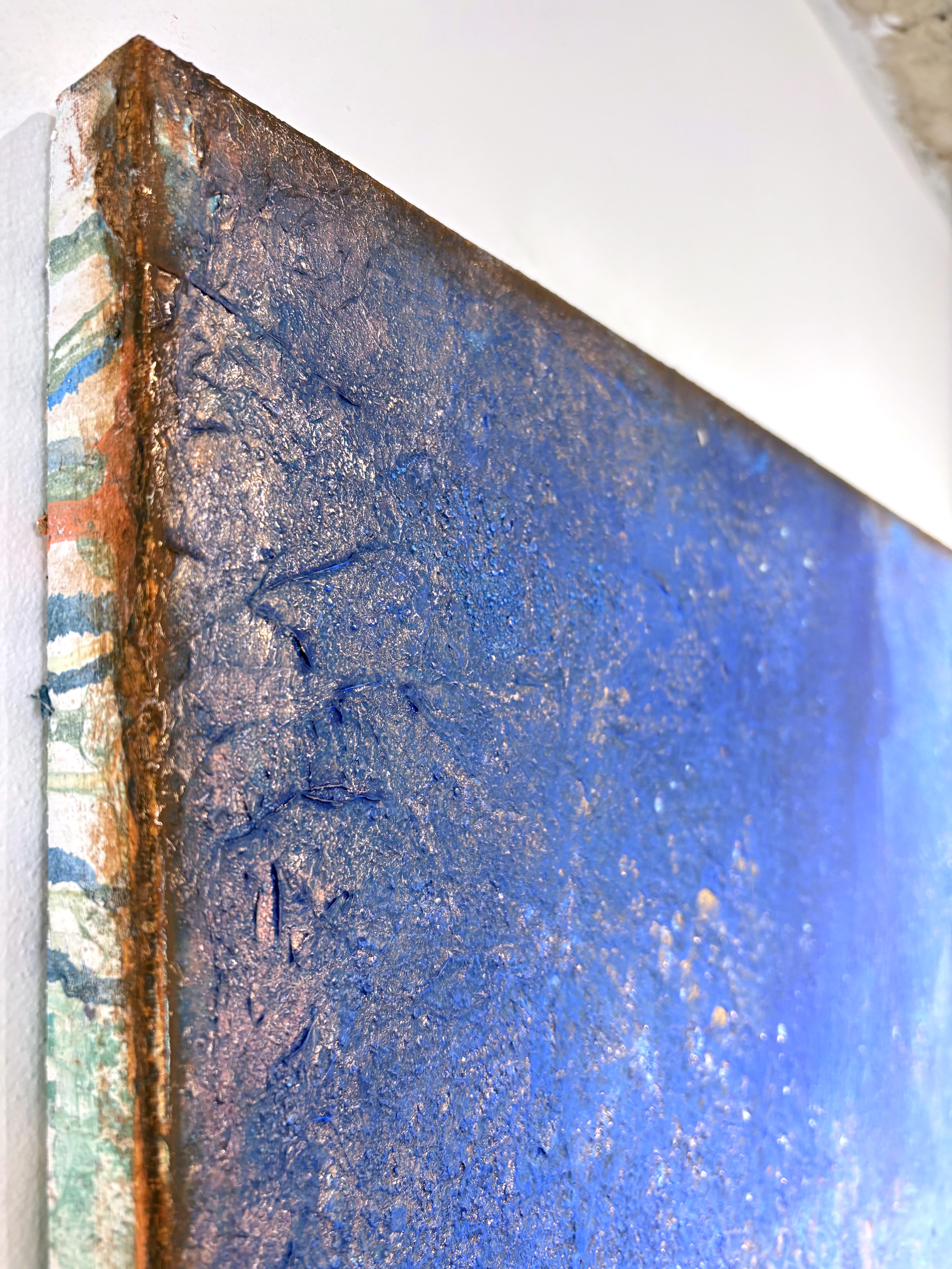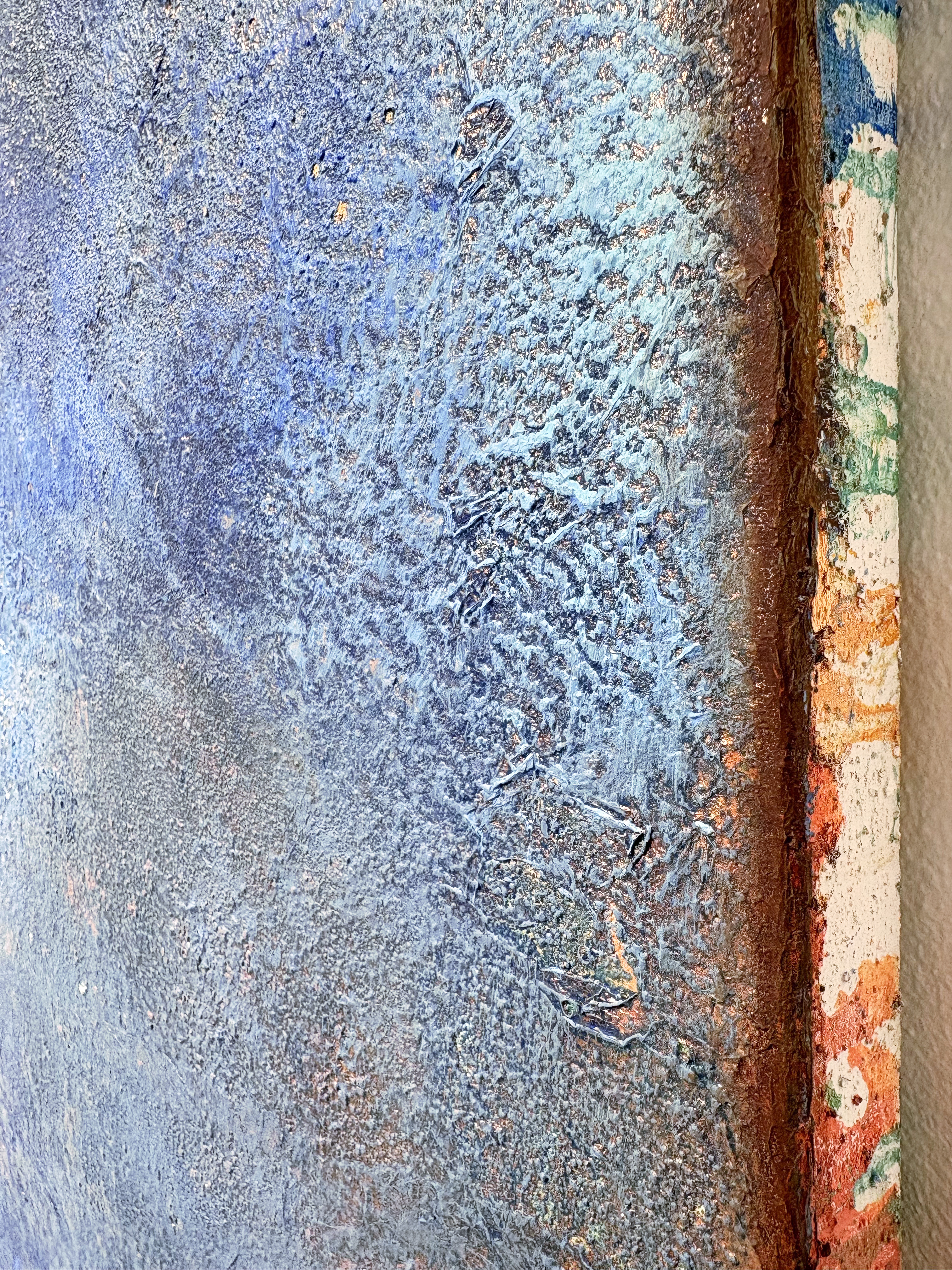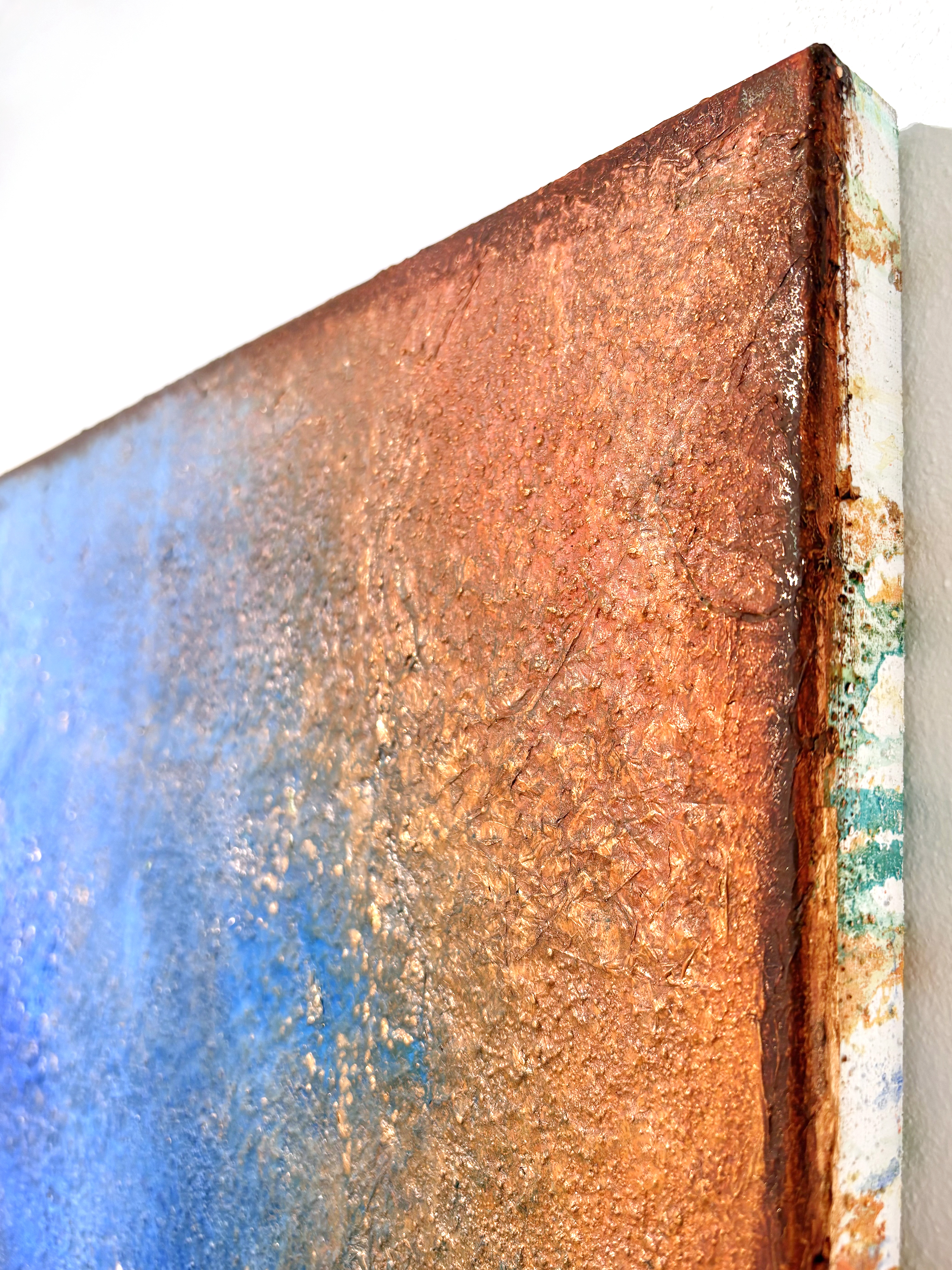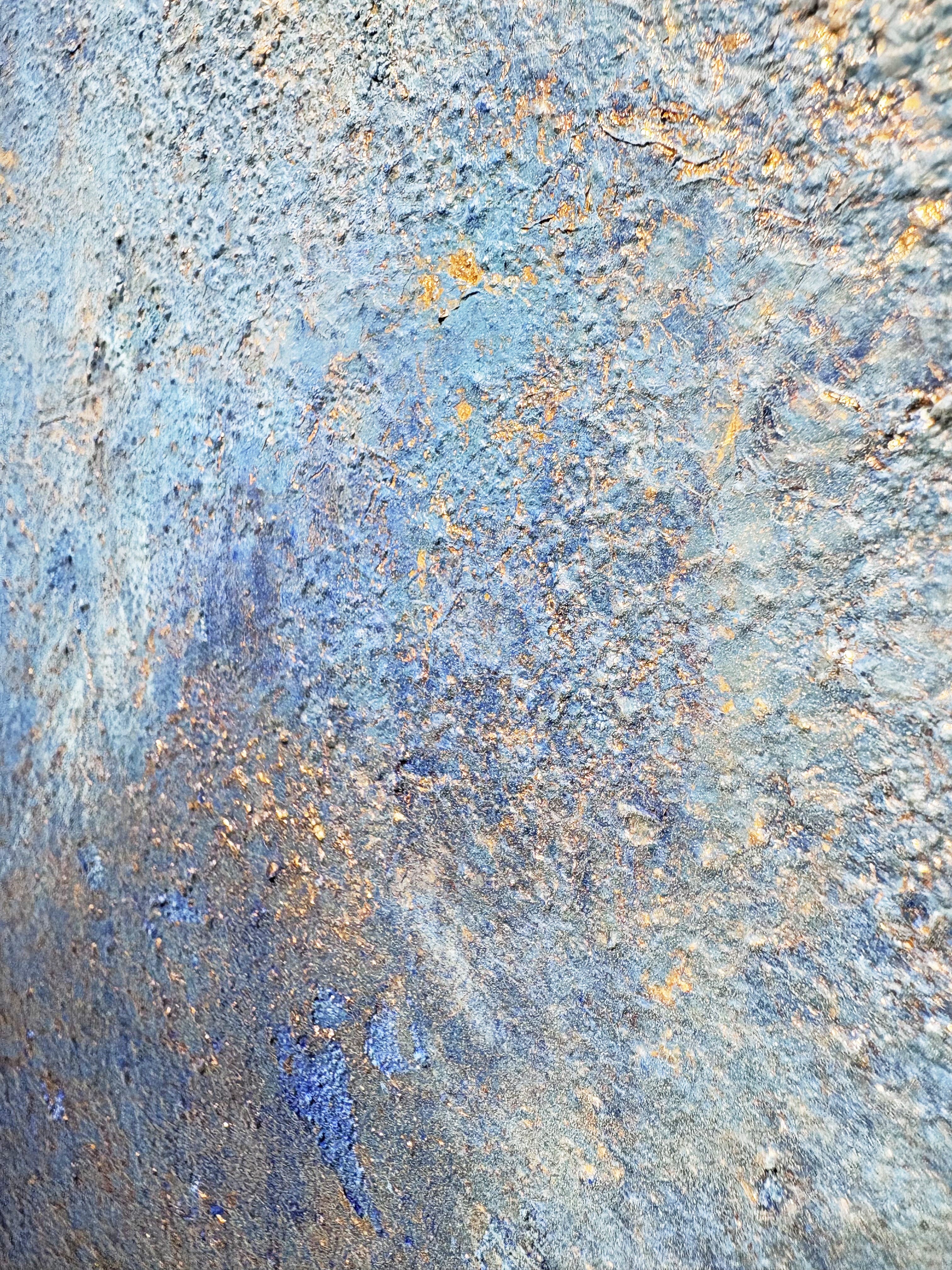 All of my abstract works are original mixed media artworks on canvas, usually consisting of more than 10 layers. Materials I use: Sand, marble powder, foils, acrylics, oil pastel, coal, spray paint and varnish. My goal is to create interesting structures, fine textures and soft color harmonies for an emotional perception.
