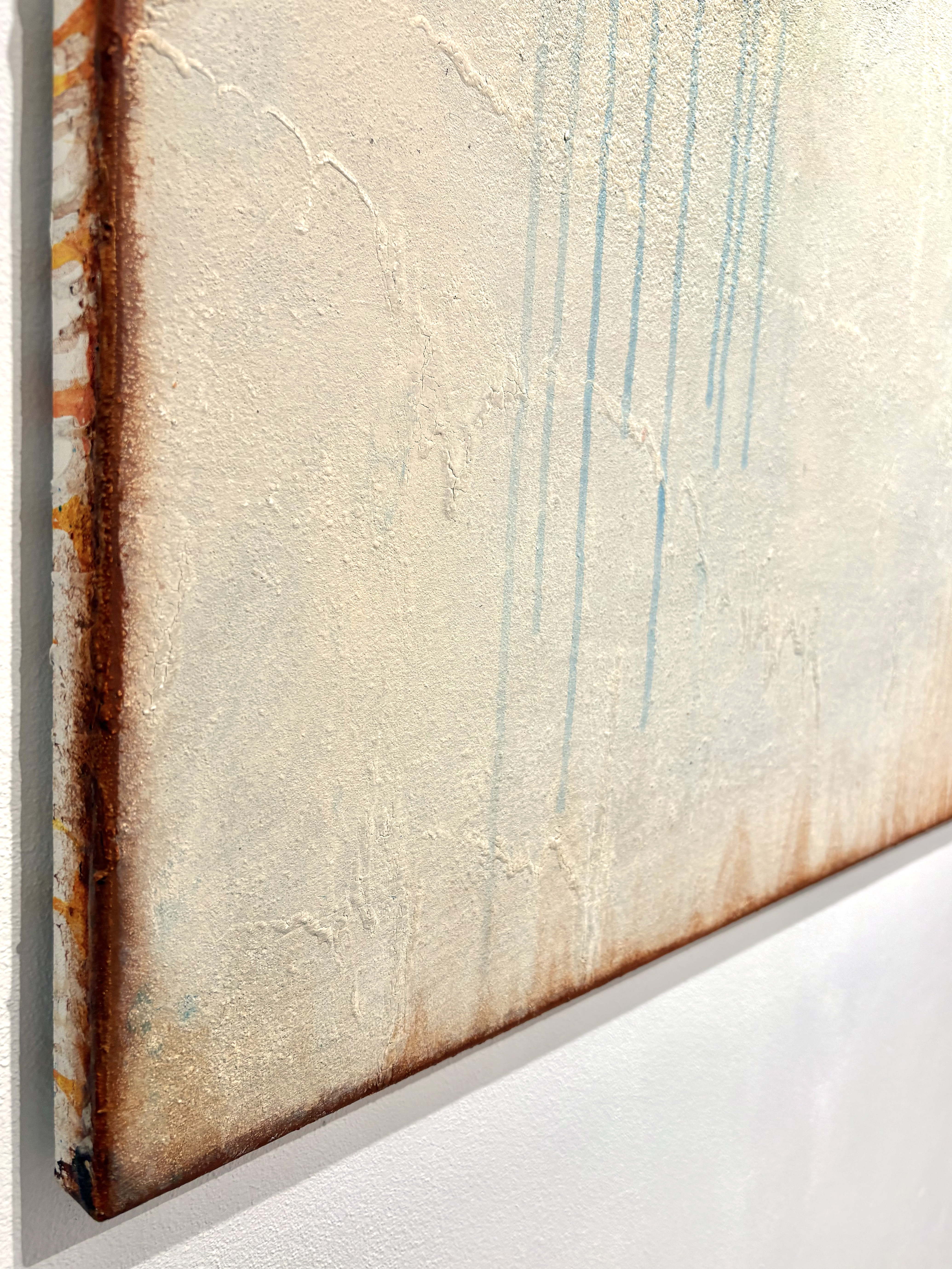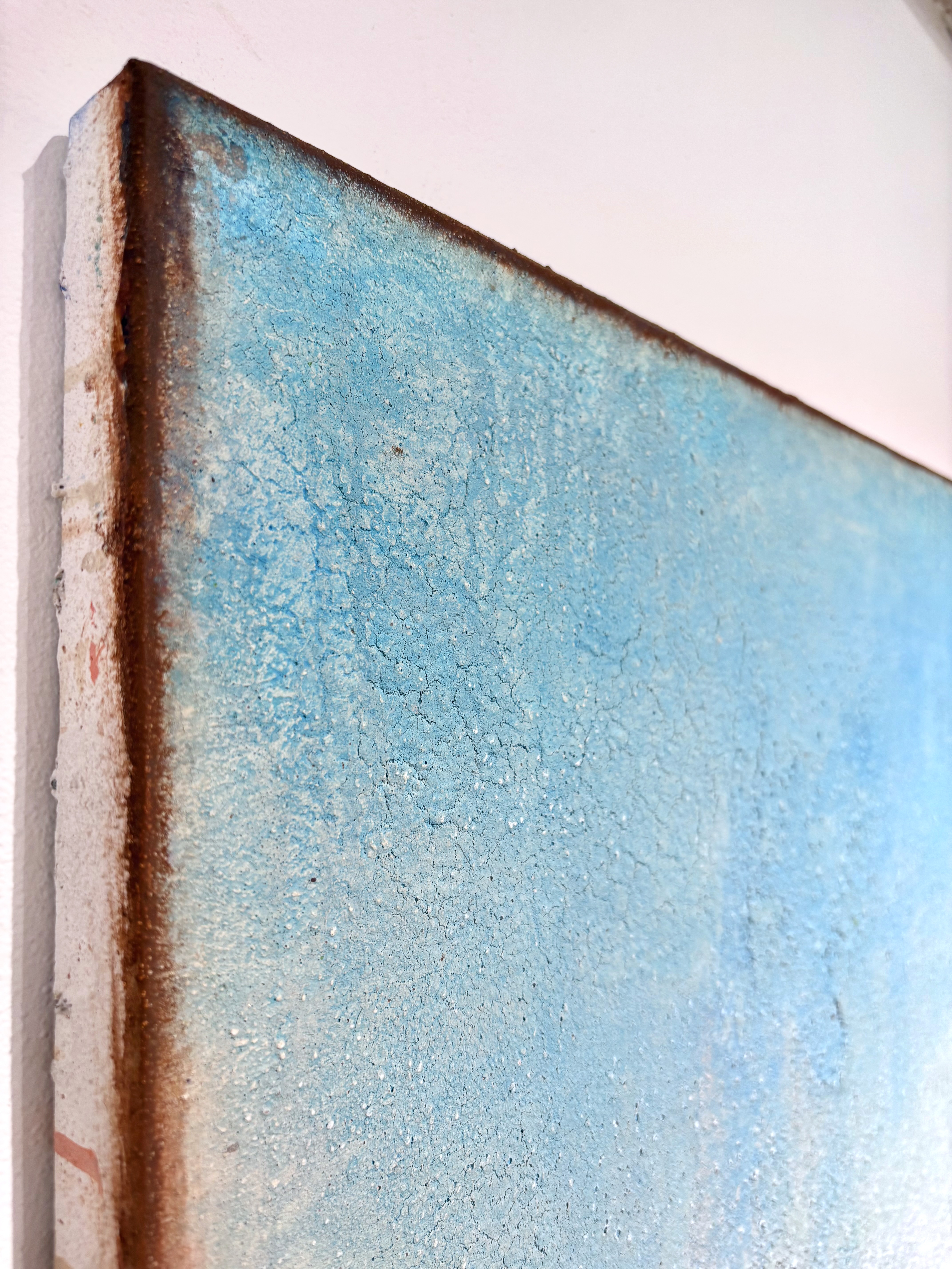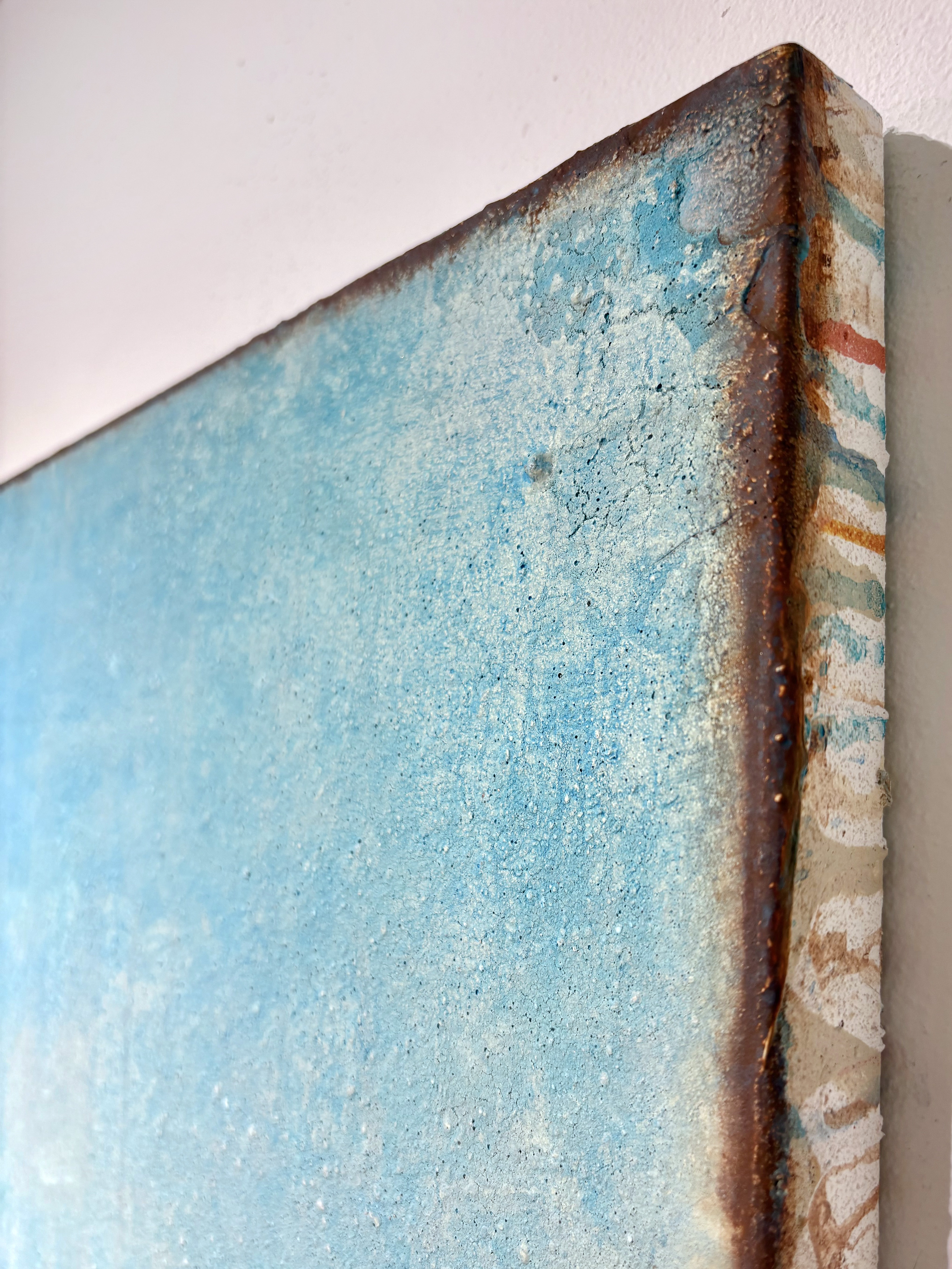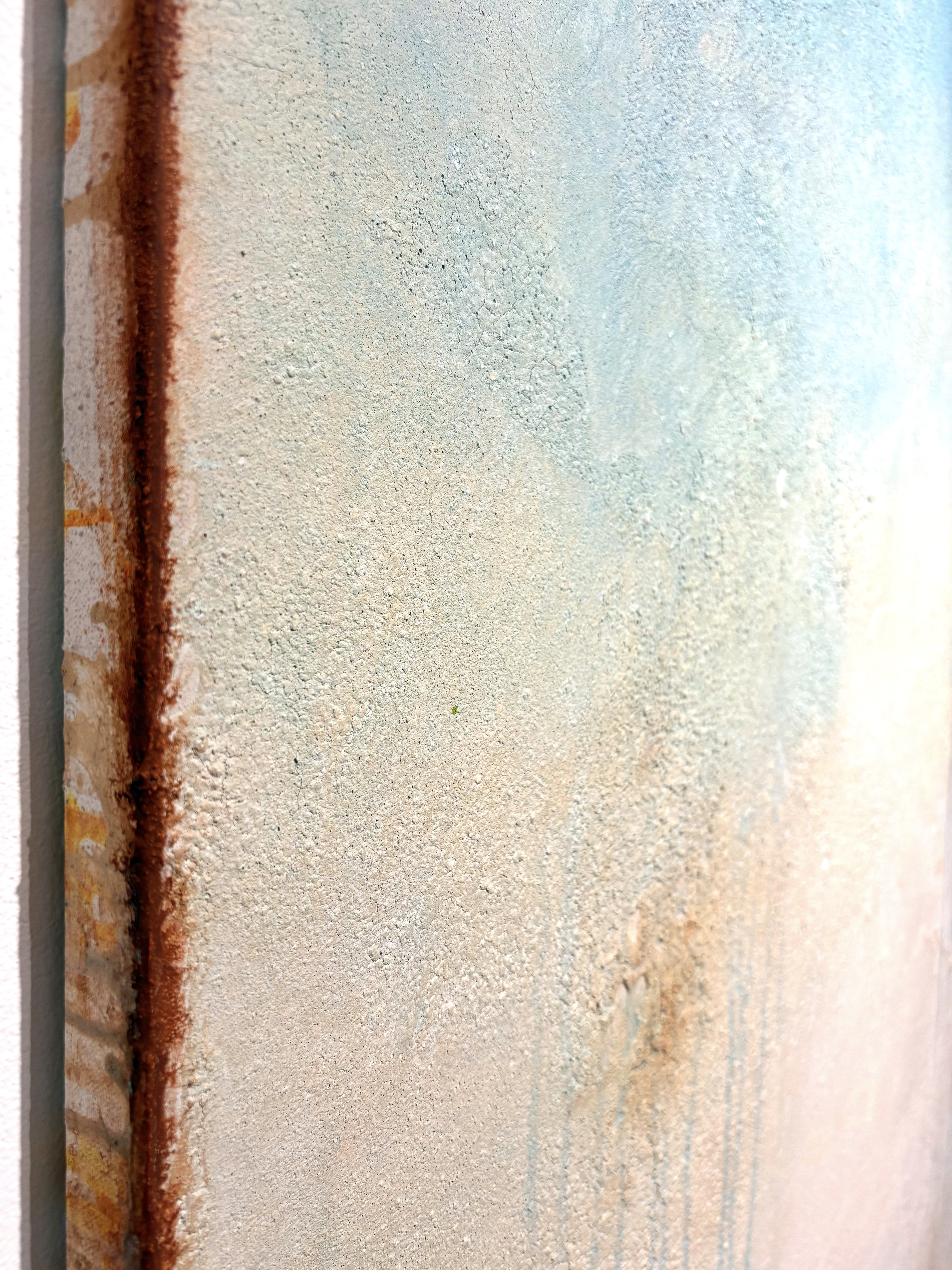 All of my abstract works are original mixed media artworks on canvas, usually consisting of more than 10 layers. Materials I use: Sand, marble powder, foils, acrylics, oil pastel, coal, spray paint and varnish. My goal is to create interesting structures, fine textures and soft color harmonies for an emotional perception.