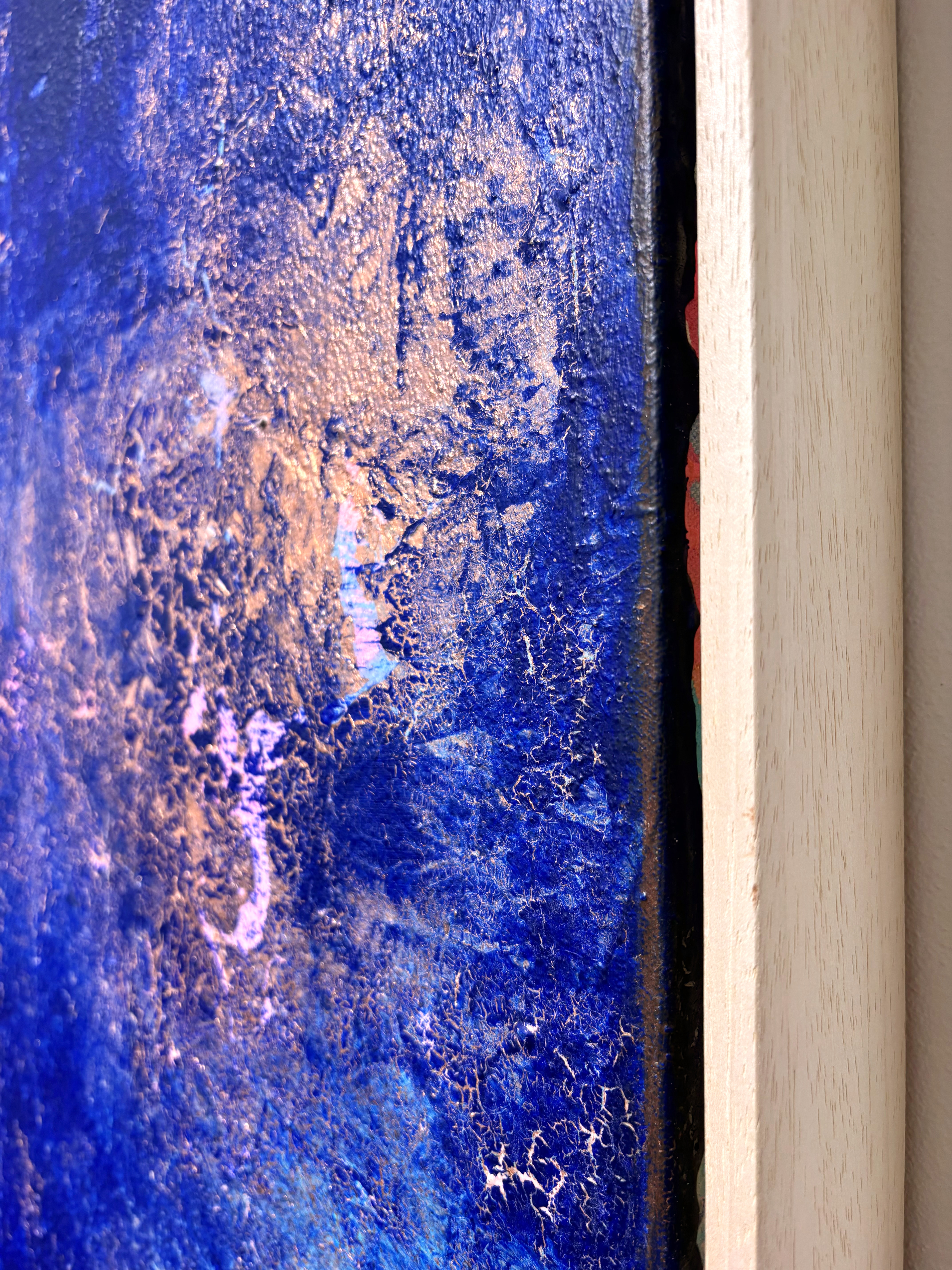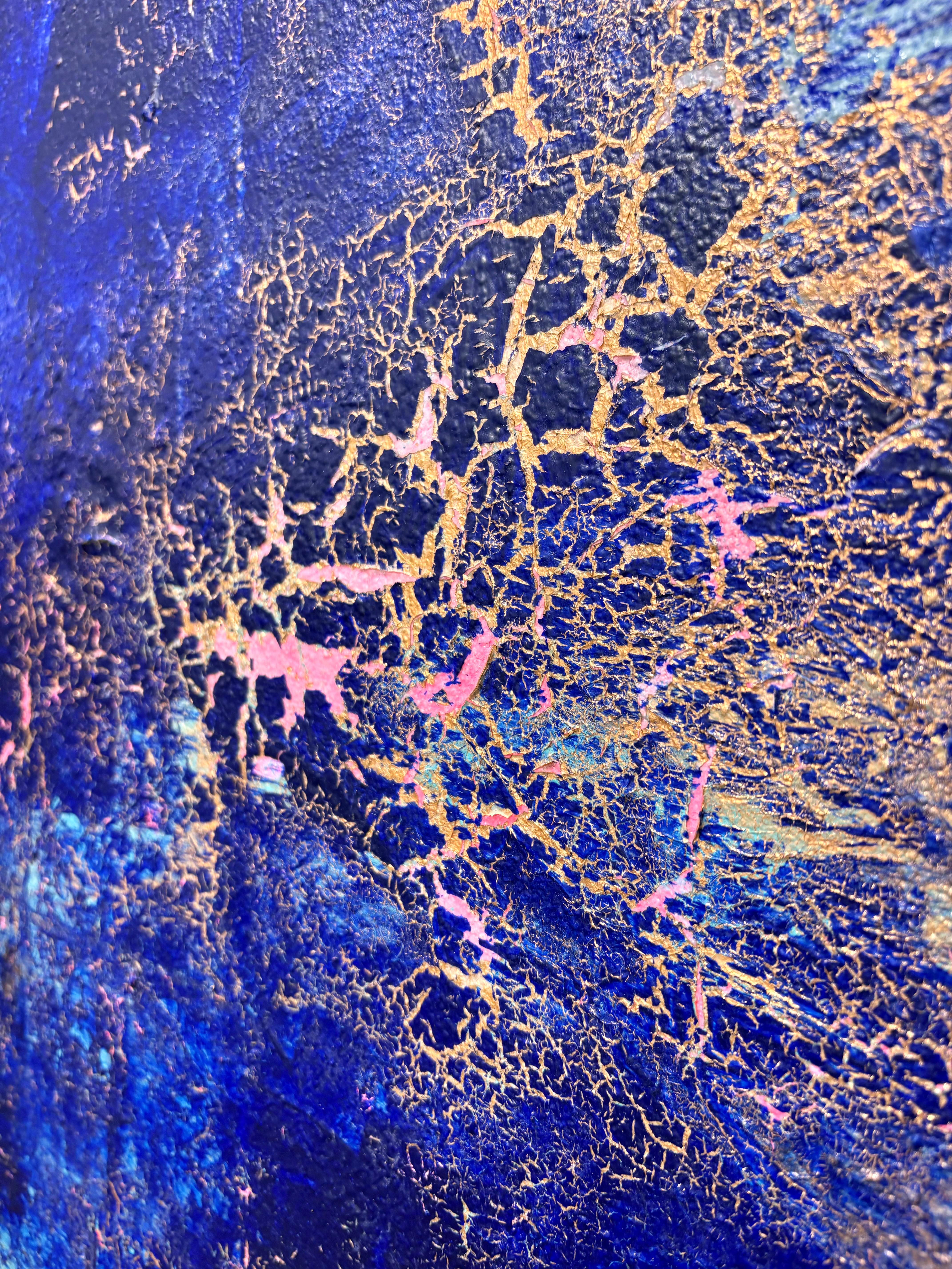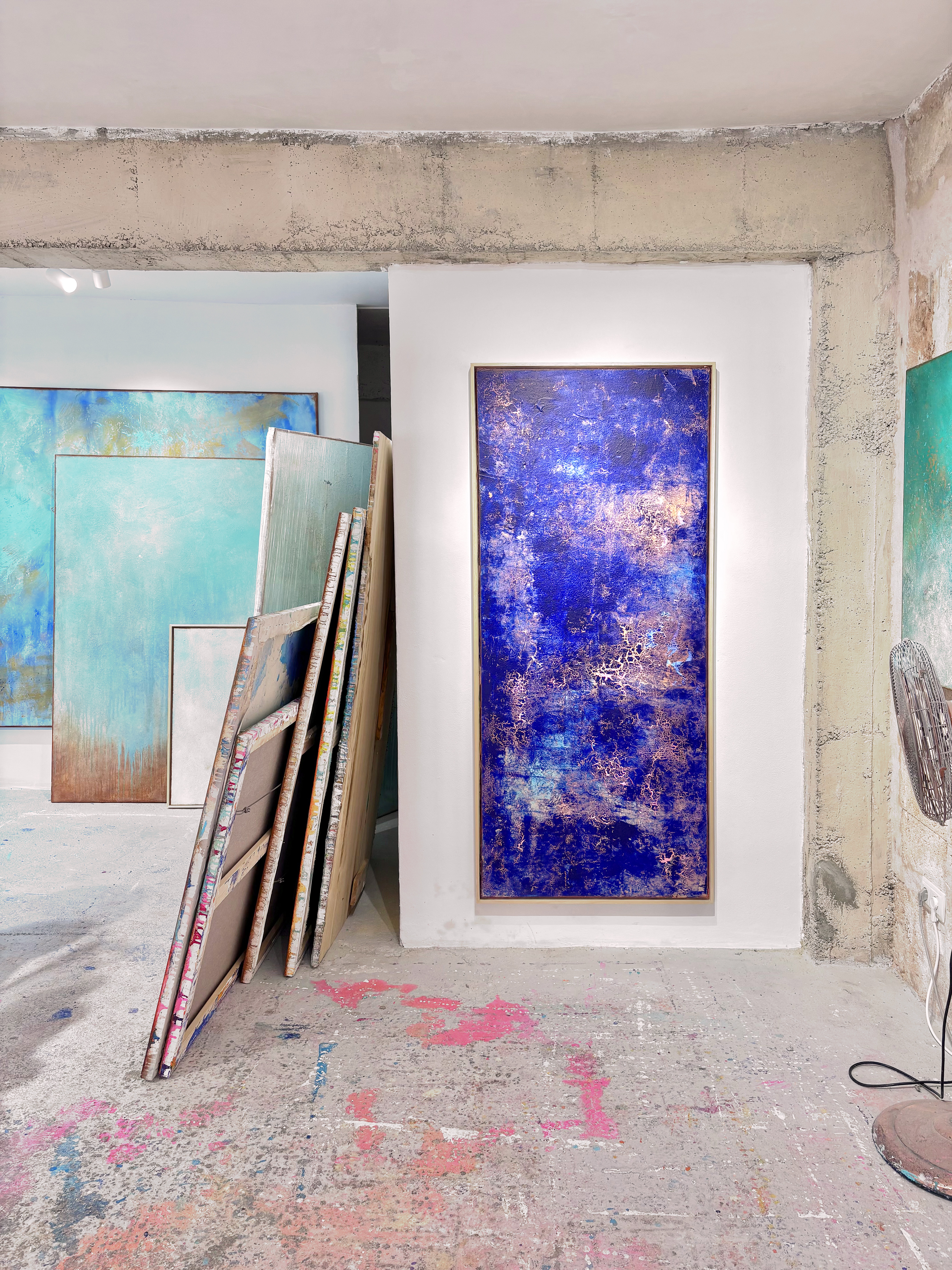 All of my abstract works are original mixed media artworks on canvas, usually consisting of more than 10 layers. Materials I use: Sand, marble powder, foils, acrylics, oil pastel, coal, spray paint and varnish. My goal is to create interesting structures, fine textures and soft color harmonies for an emotional perception.