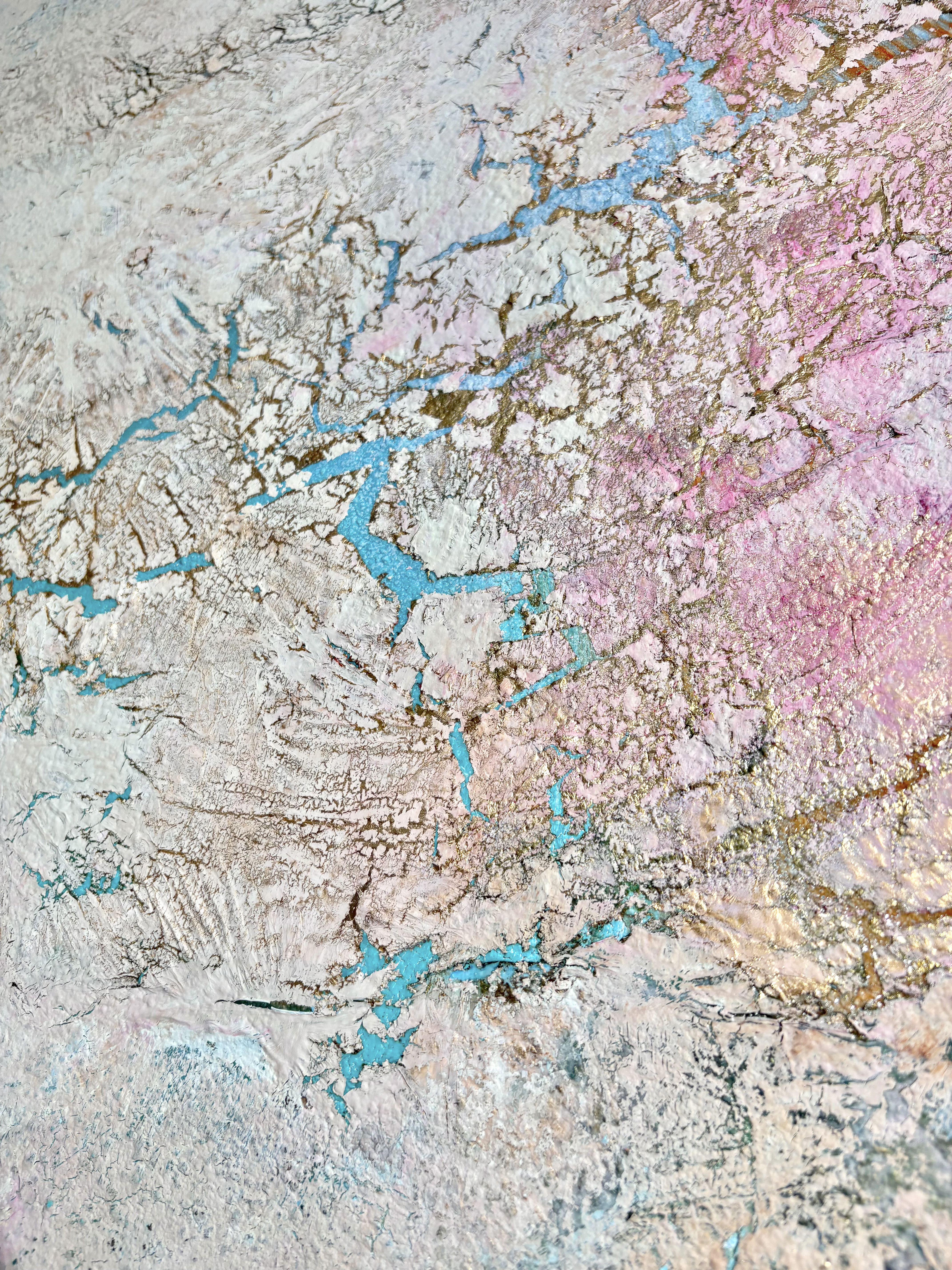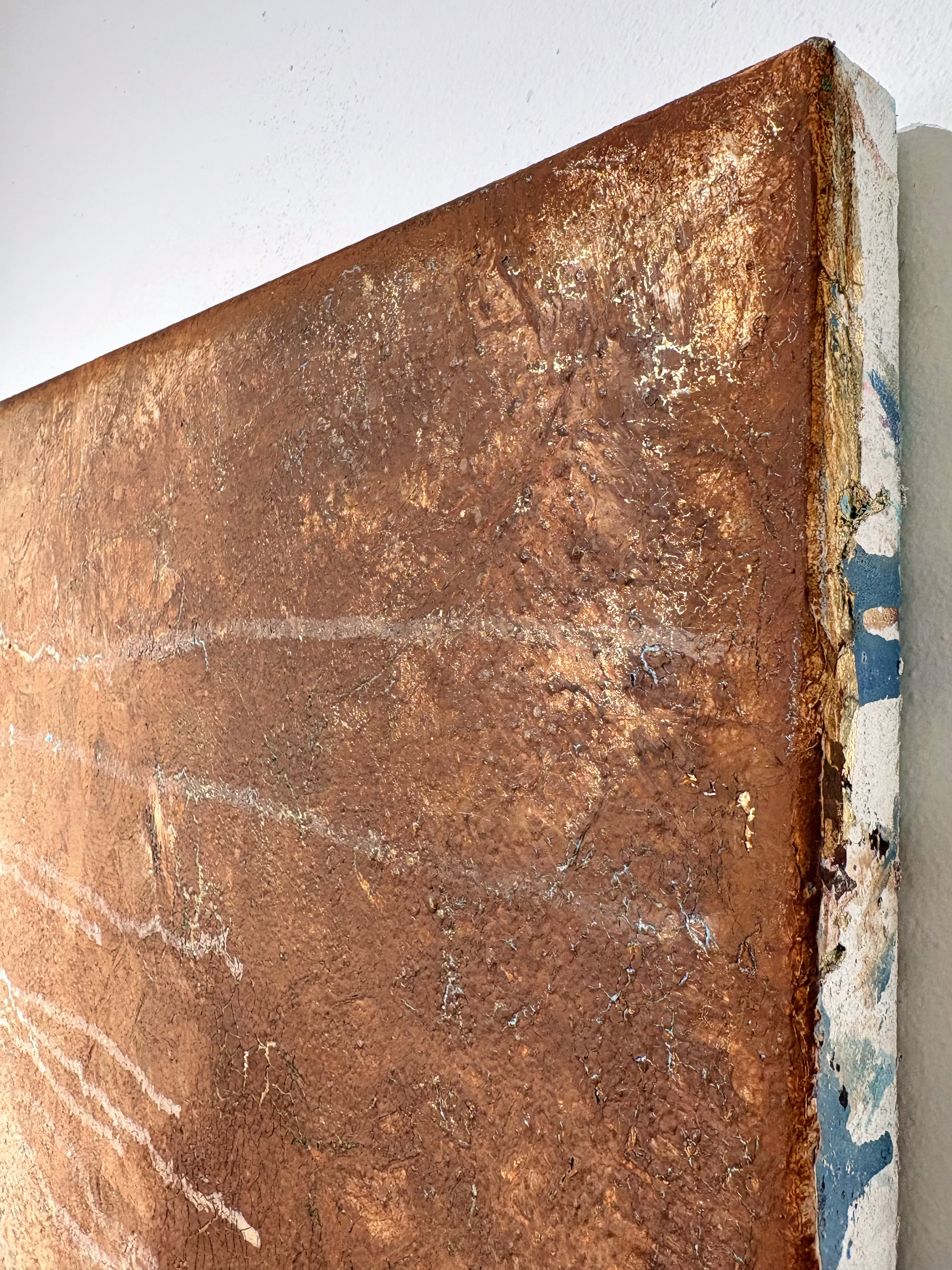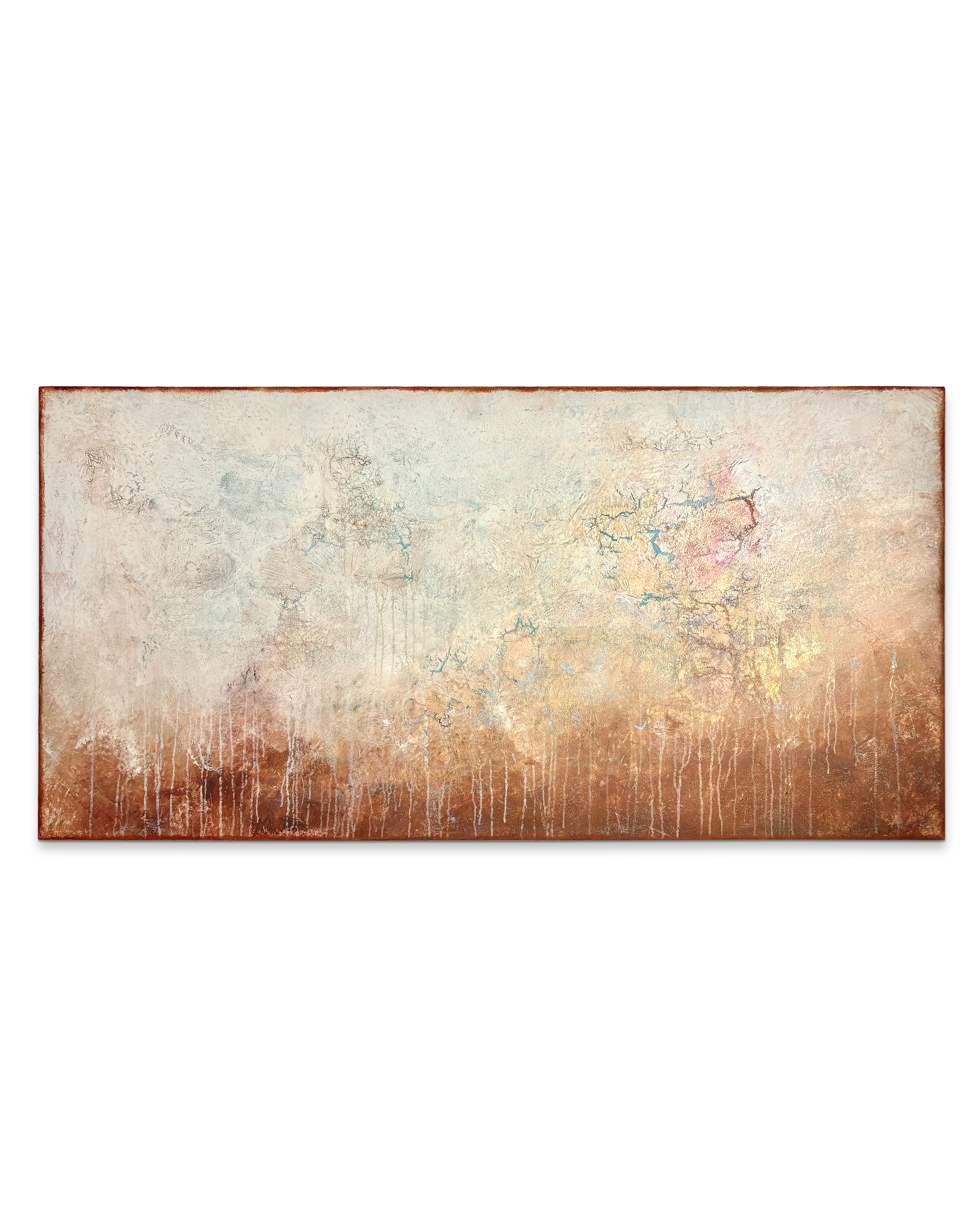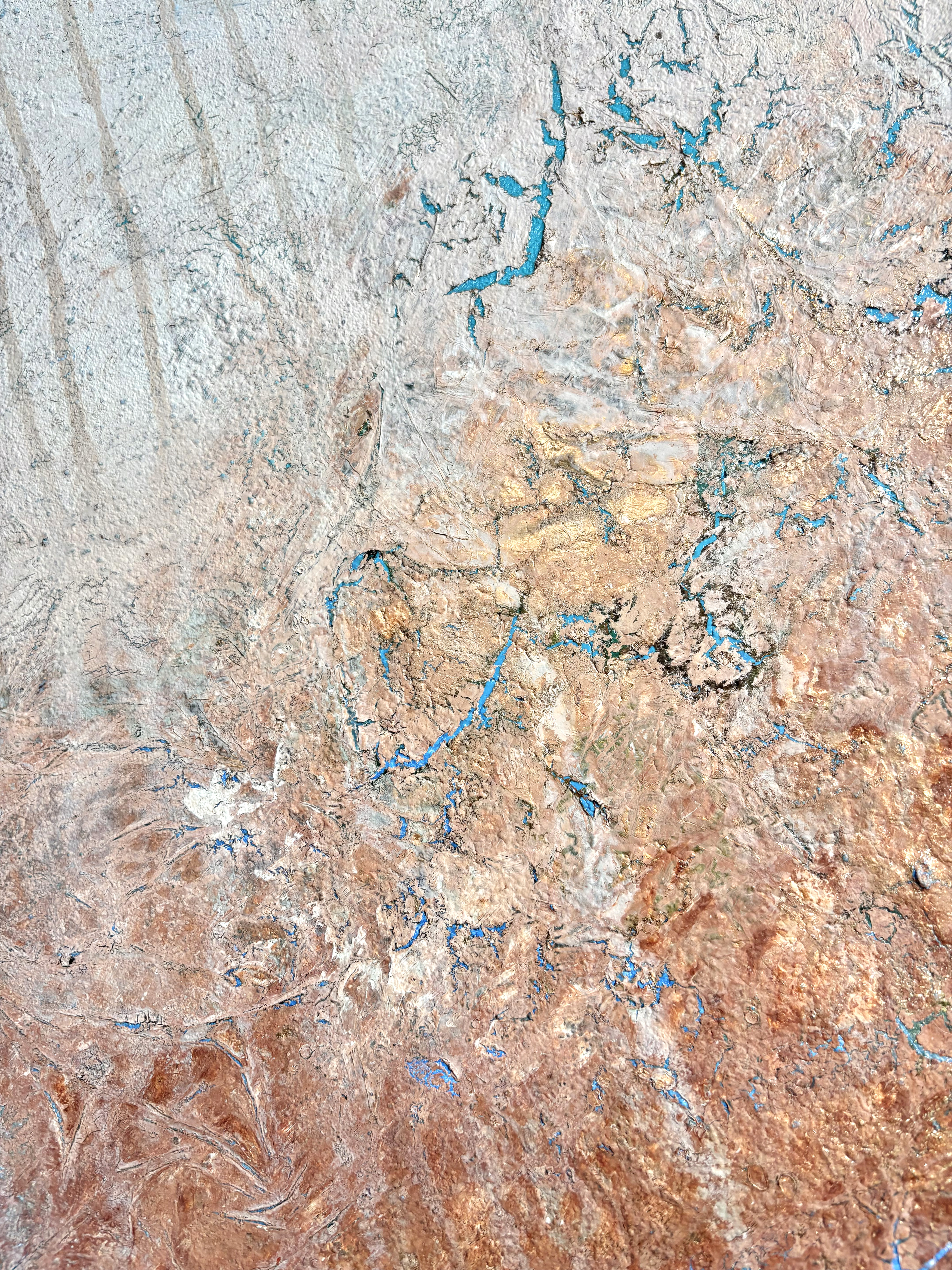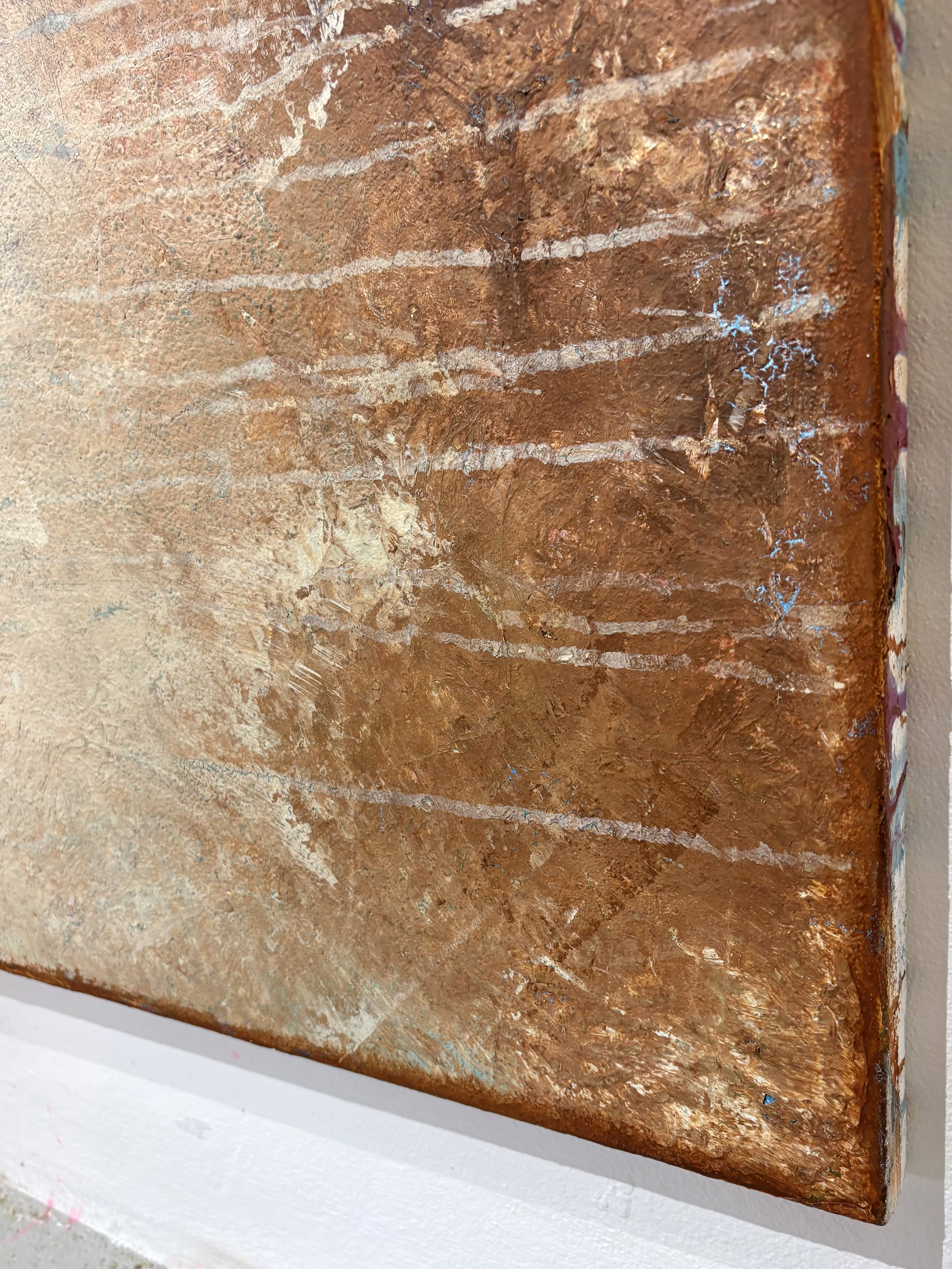All of my abstract works are original mixed media artworks on canvas, usually consisting of more than 10 layers. Materials I use: Sand, marble powder, foils, acrylics, oil pastel, coal, spray paint and varnish. My goal is to create interesting structures, fine textures and soft color harmonies for an emotional perception.